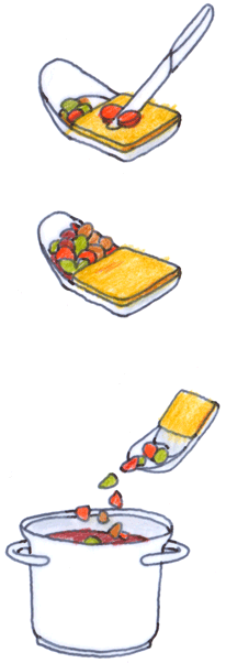 Pick up cut & paste and drop the whole content into the sauce-pot on the oven.