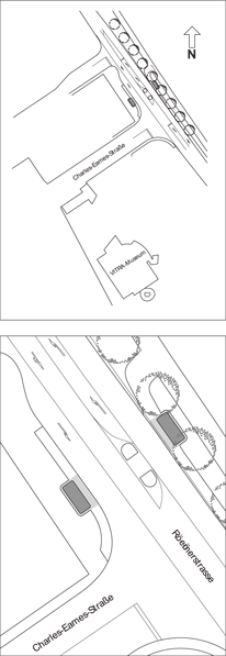 Für die Beschäftigten der Vitra AG sowie für die mit öffentlichen Verkehrsmitteln anreisenden Besucher des Vitra Design Museums sollten zwei Wartehallen realisiert werden. Sie liegen an der Bundesstrasse nach Weil am Rhein.