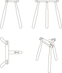 Der Tischbock mit seinen drei markanten, gedrechselten Beinen gleicht Bodenunebenheiten aus und gewährt dadurch einen sicheren Stand bei einem Maximum an Beinfreiheit.